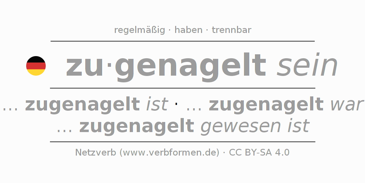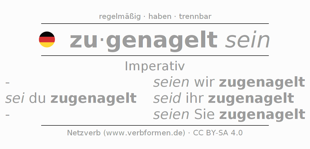 Das Verb zunageln vollständig in allen Personen und Numeri im Imperativ Präsens konjugiert