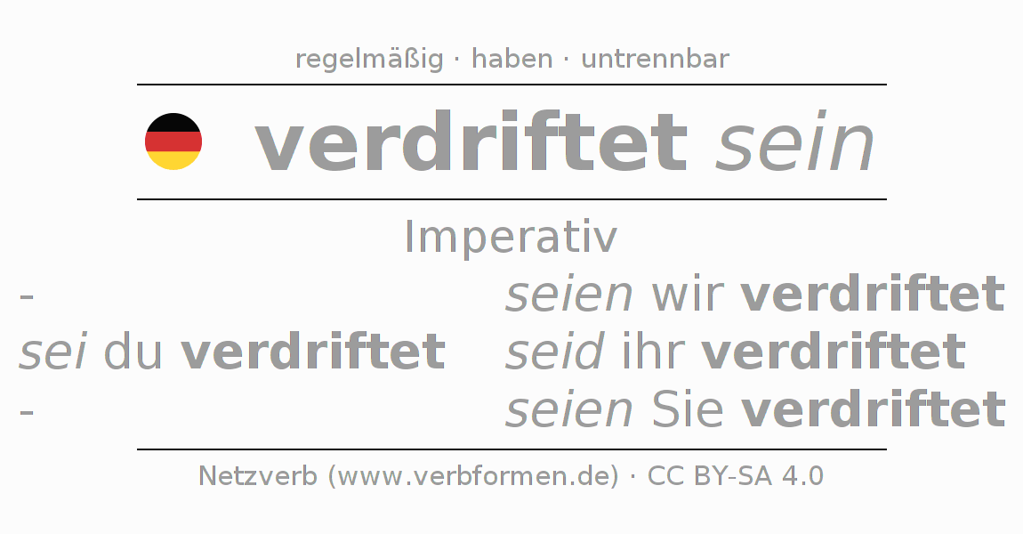 Das Verb verdriften vollständig in allen Personen und Numeri im Imperativ Präsens konjugiert