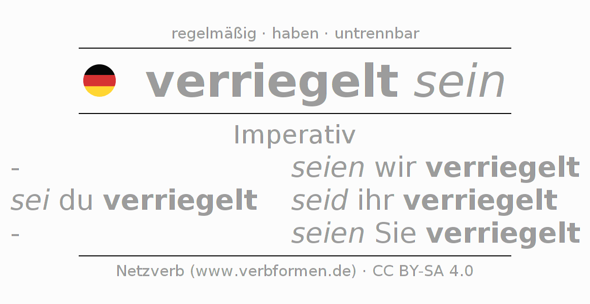 Das Verb verriegeln vollständig in allen Personen und Numeri im Imperativ Präsens konjugiert