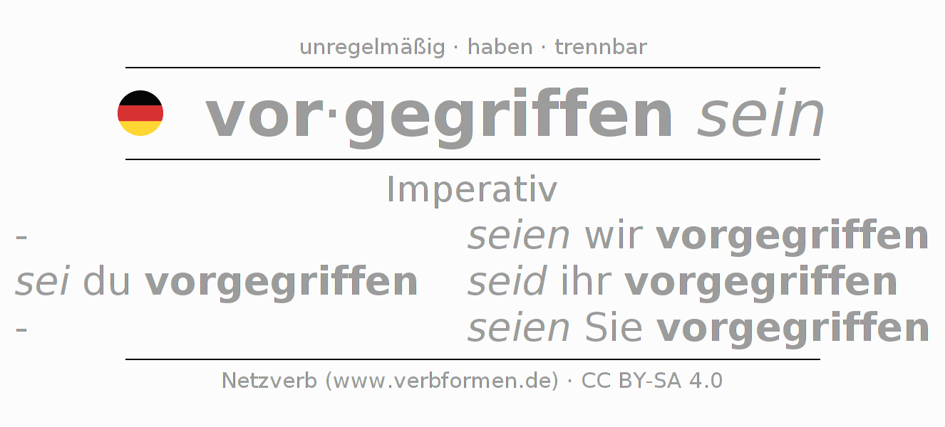 Das Verb vorgreifen vollständig in allen Personen und Numeri im Imperativ Präsens konjugiert