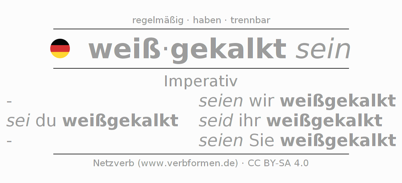 Das Verb weißkalken vollständig in allen Personen und Numeri im Imperativ Präsens konjugiert