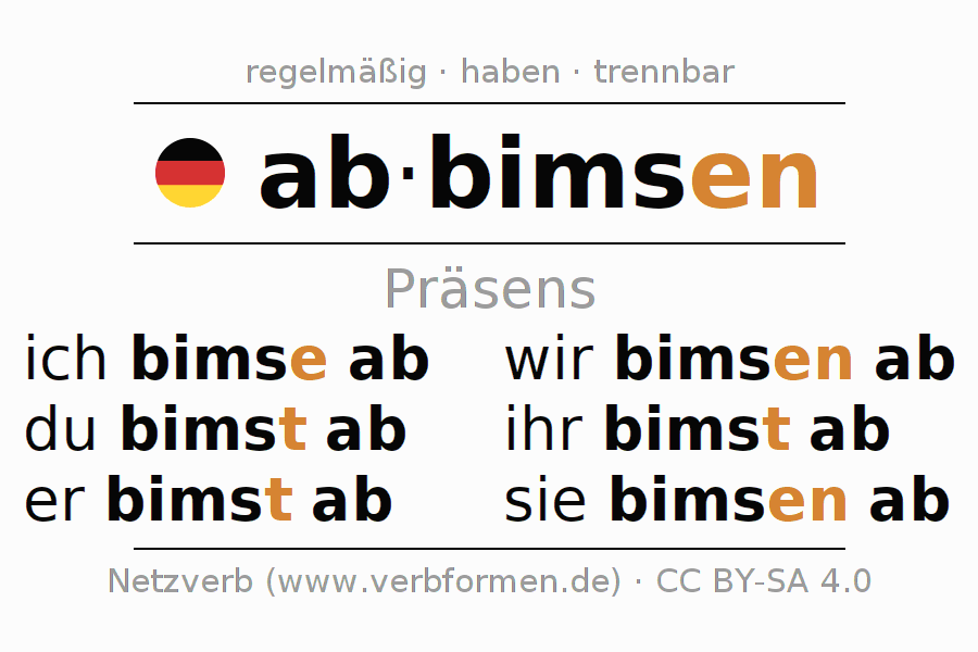 Verbformen im Präsens von abbimsen