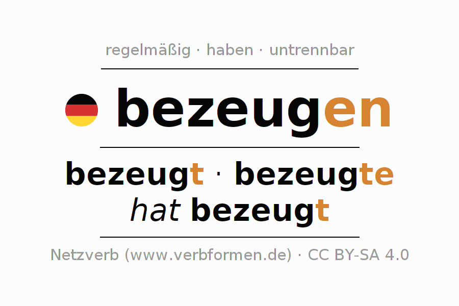 Das Verb bezeugen vollständig in allen Personen und Numeri im Präsens Indikativ konjugiert