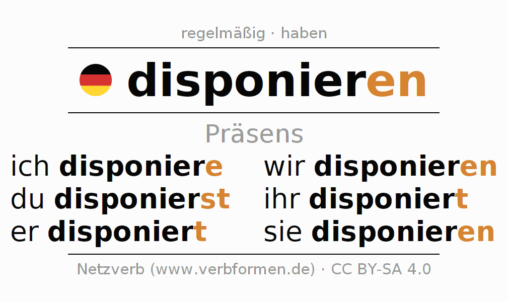 Das Verb disponieren vollständig in allen Personen und Numeri im Präsens Indikativ konjugiert