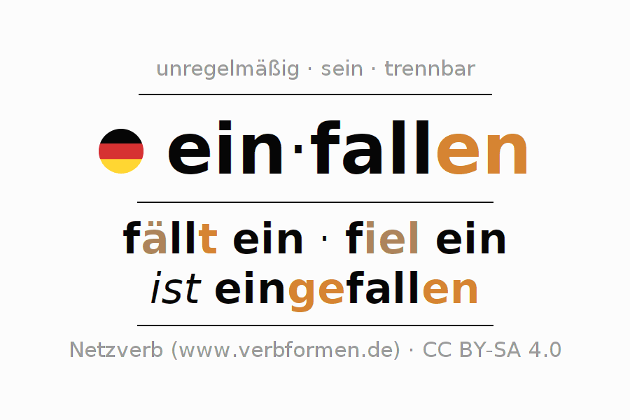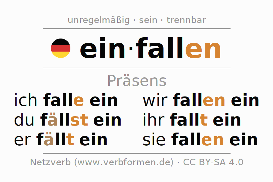 Das Verb einfallen vollständig in allen Personen und Numeri im Präsens Indikativ konjugiert