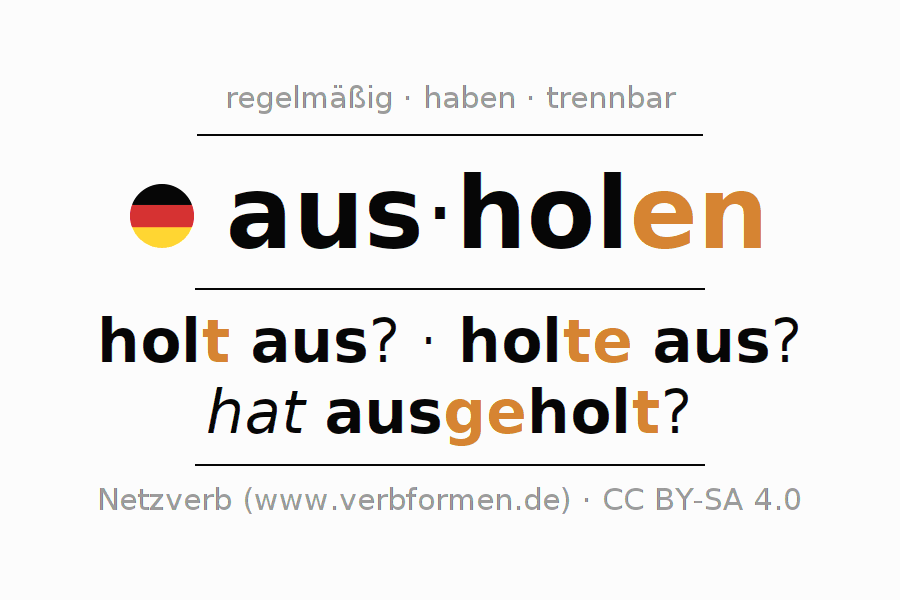 Das Verb ausholen vollständig in allen Personen und Numeri im Präsens Indikativ konjugiert