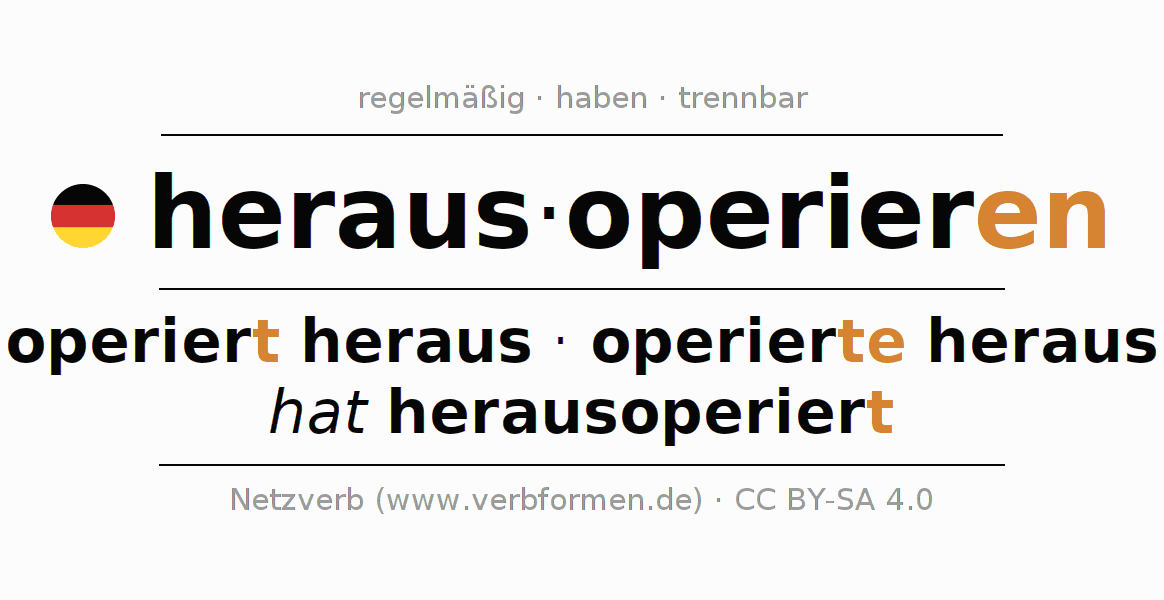 Das Verb herausoperieren vollständig in allen Personen und Numeri im Präsens Indikativ konjugiert
