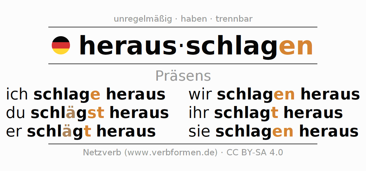 Das Verb herausschlagen vollständig in allen Personen und Numeri im Präsens Indikativ konjugiert