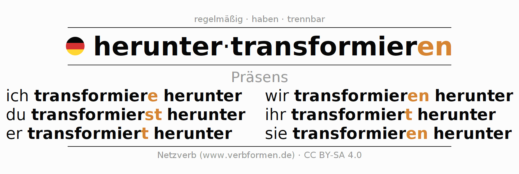 Präsens des Verbs heruntertransformieren