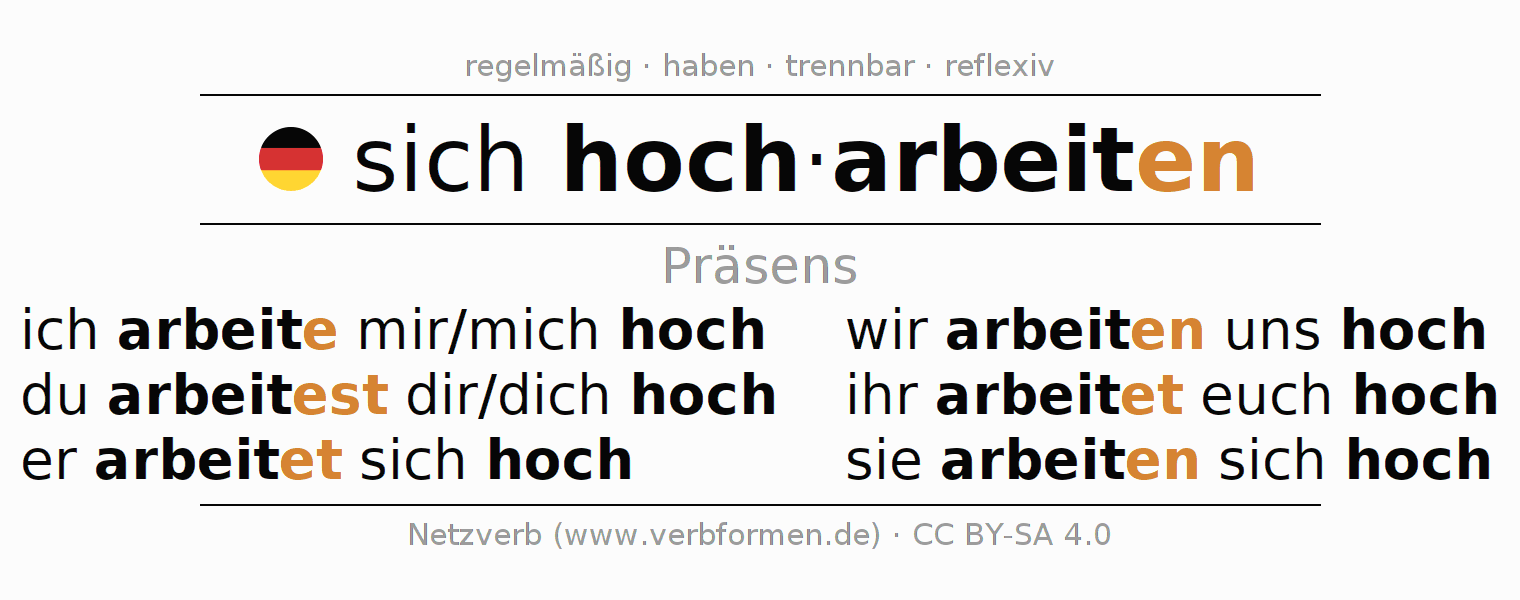 Das Verb sich hocharbeiten vollständig in allen Personen und Numeri im Präsens Indikativ konjugiert