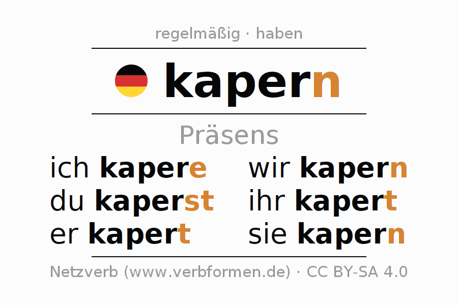Das Verb kapern vollständig in allen Personen und Numeri im Präsens Indikativ konjugiert