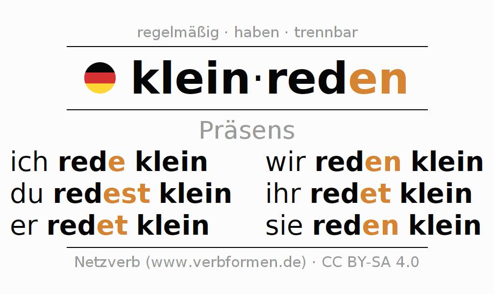 Das Verb kleinreden vollständig in allen Personen und Numeri im Präsens Indikativ konjugiert
