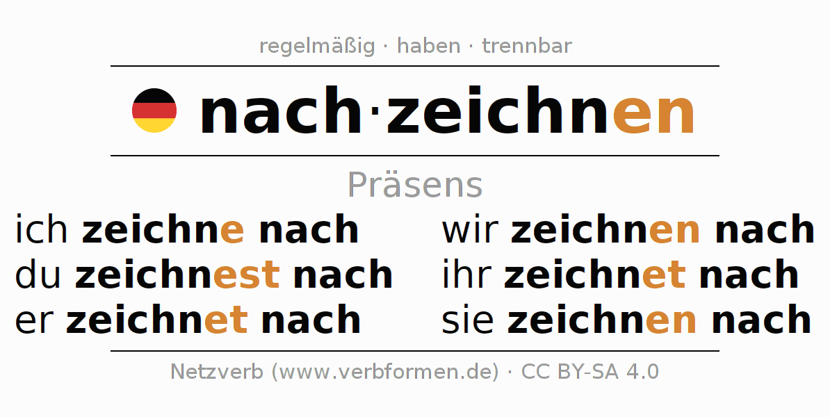 Das Verb nachzeichnen vollständig in allen Personen und Numeri im Präsens Indikativ konjugiert