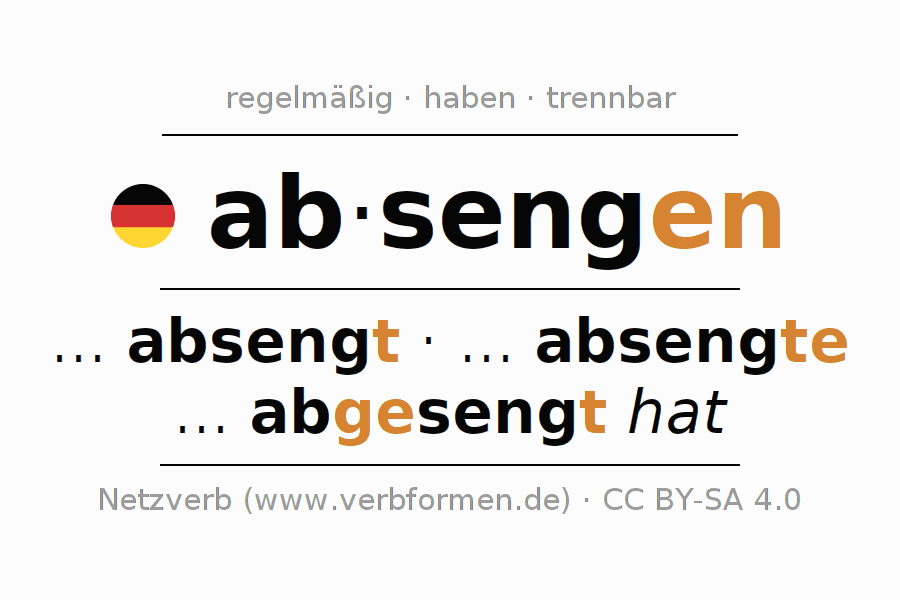 Das Verb absengen vollständig in allen Personen und Numeri im Präsens Indikativ konjugiert