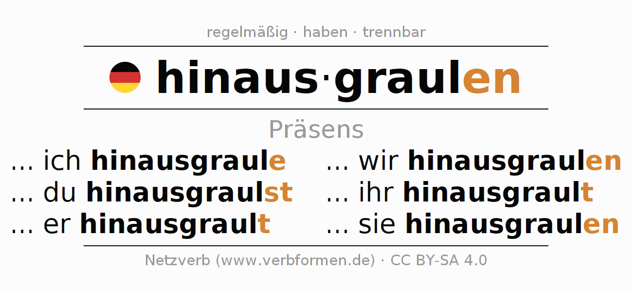 Das Verb hinausgraulen vollständig in allen Personen und Numeri im Präsens Indikativ konjugiert