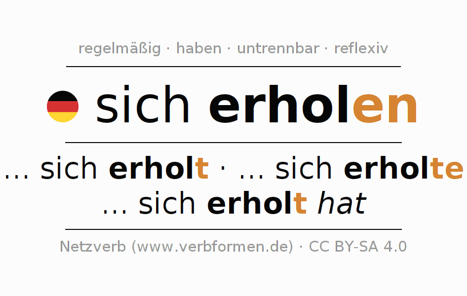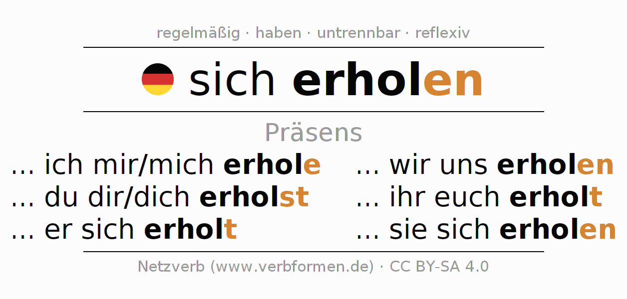 Das Verb sich erholen vollständig in allen Personen und Numeri im Präsens Indikativ konjugiert