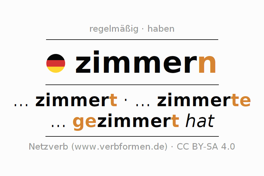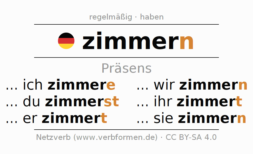 Das Verb zimmern vollständig in allen Personen und Numeri im Präsens Indikativ konjugiert
