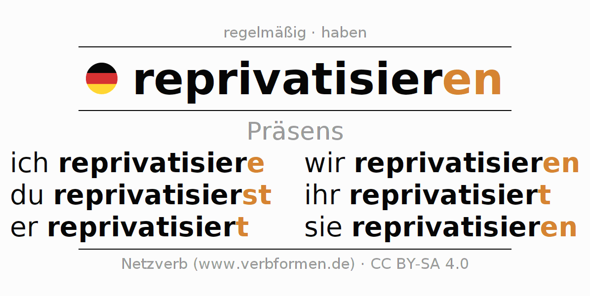 Das Verb reprivatisieren vollständig in allen Personen und Numeri im Präsens Indikativ konjugiert