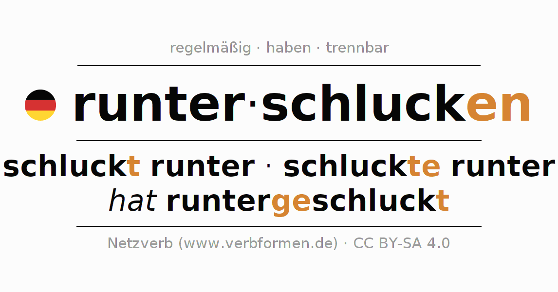 Das Verb runterschlucken vollständig in allen Personen und Numeri im Präsens Indikativ konjugiert