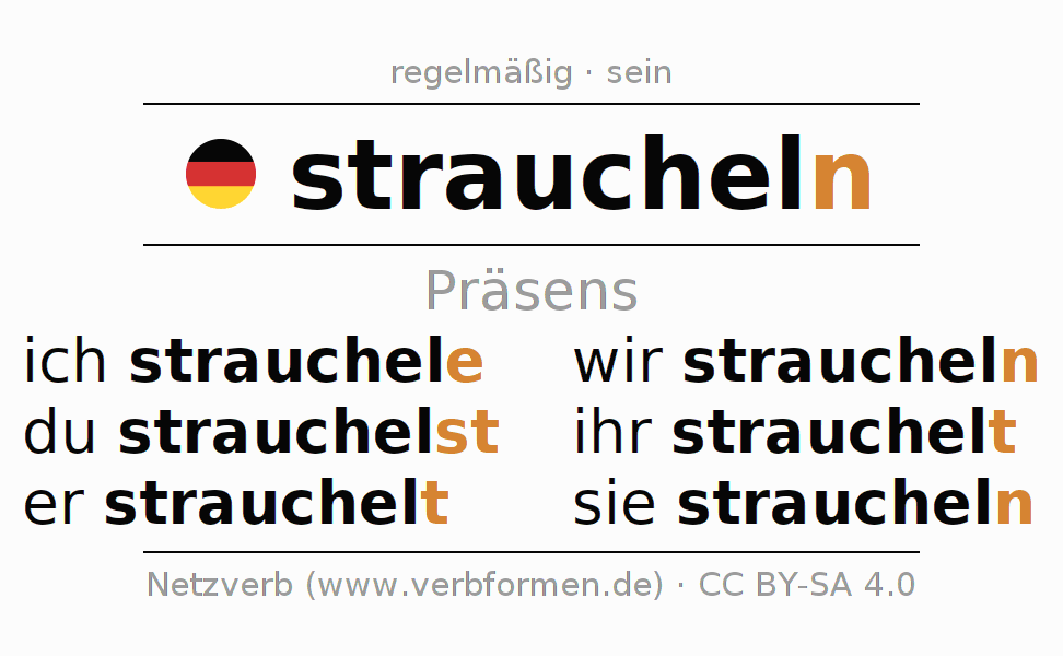Das Verb straucheln vollständig in allen Personen und Numeri im Präsens Indikativ konjugiert