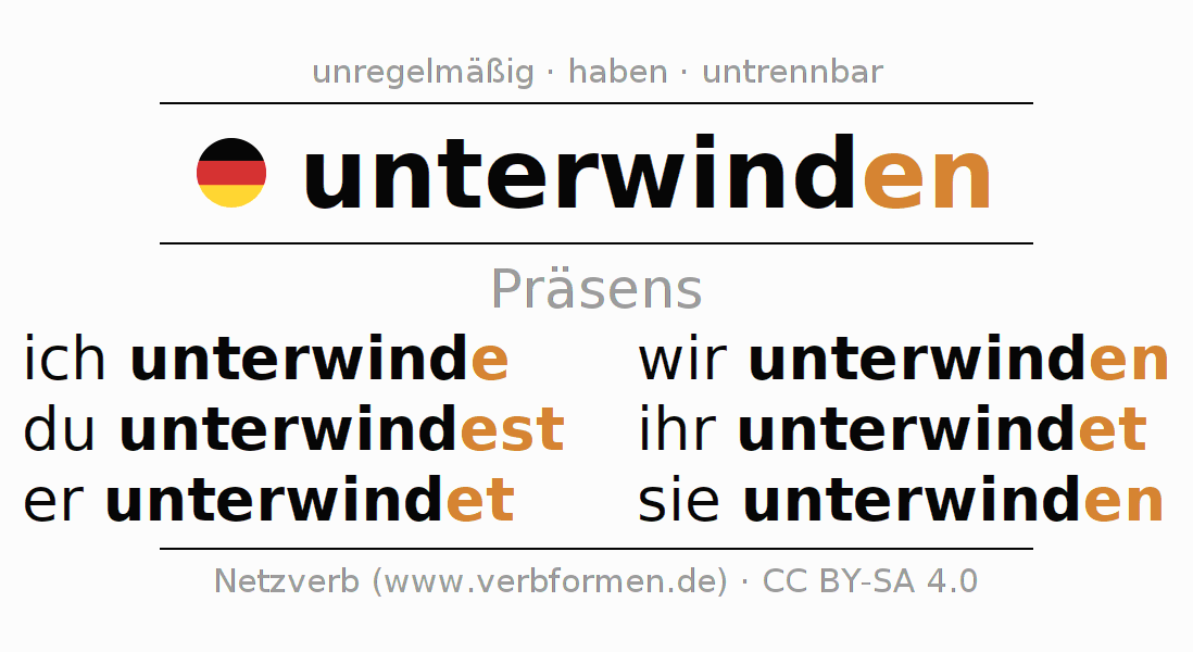 Das Verb unterwinden vollständig in allen Personen und Numeri im Präsens Indikativ konjugiert