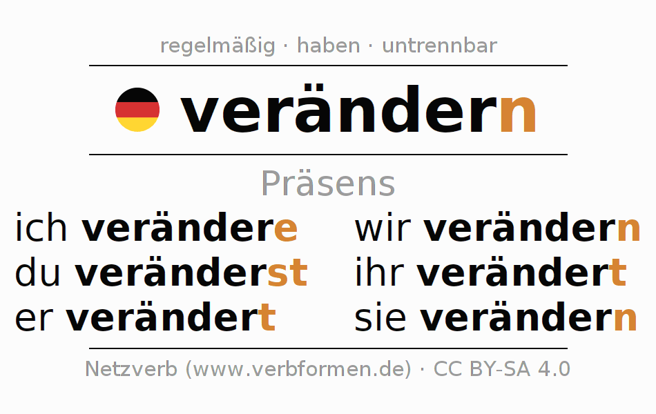 Das Verb verändern vollständig in allen Personen und Numeri im Präsens Indikativ konjugiert
