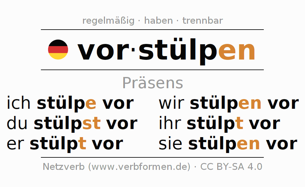 Das Verb vorstülpen vollständig in allen Personen und Numeri im Präsens Indikativ konjugiert