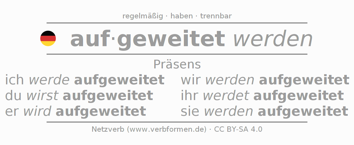 Das Verb aufweiten vollständig in allen Personen und Numeri im Präsens Indikativ konjugiert