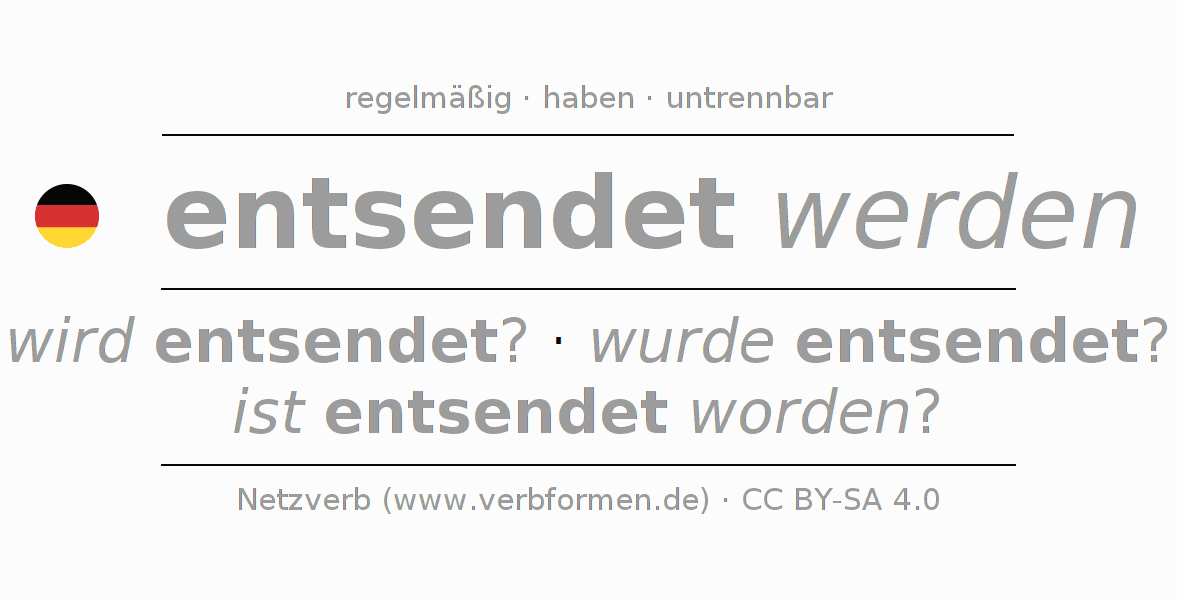 Das Verb entsenden (regelm) vollständig in allen Personen und Numeri im Präsens Indikativ konjugiert