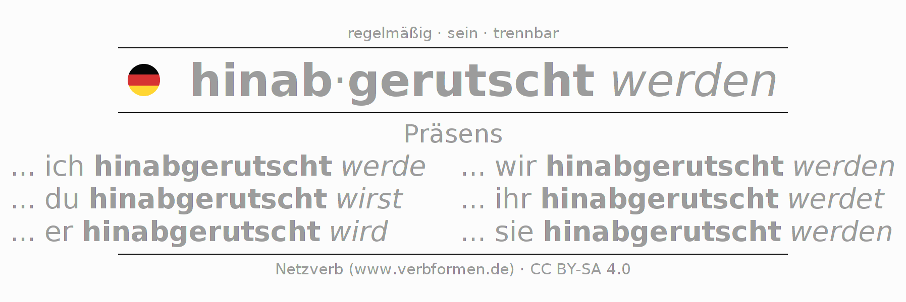 Das Verb hinabrutschen vollständig in allen Personen und Numeri im Präsens Indikativ konjugiert