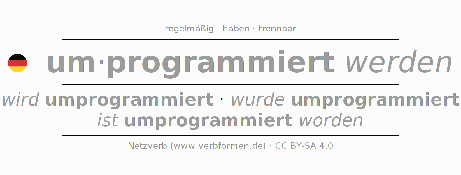 Das Verb umprogrammieren vollständig in allen Personen und Numeri im Präsens Indikativ konjugiert