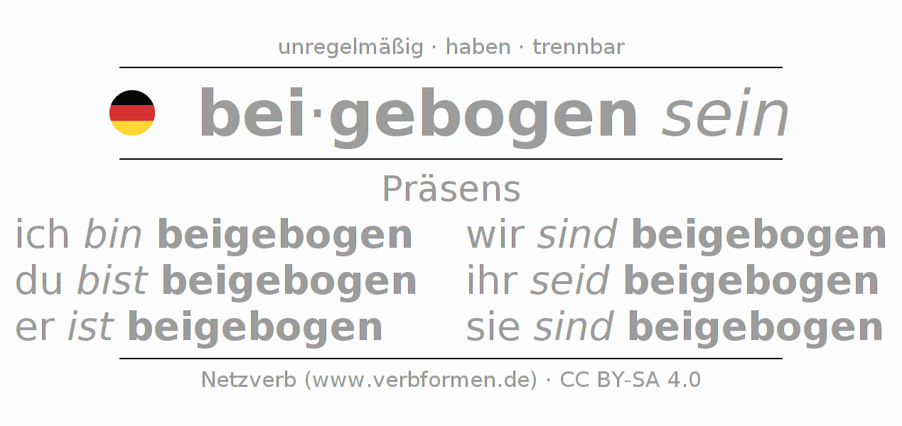 Das Verb beibiegen vollständig in allen Personen und Numeri im Präsens Indikativ konjugiert