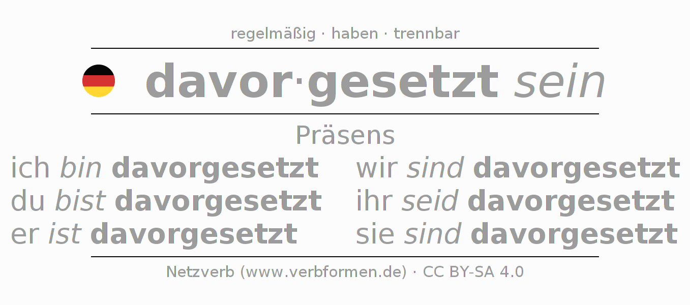 Das Verb davorsetzen vollständig in allen Personen und Numeri im Präsens Indikativ konjugiert