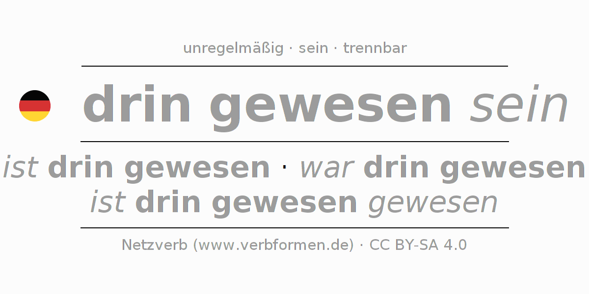 Das Verb drinsein vollständig in allen Personen und Numeri im Präsens Indikativ konjugiert