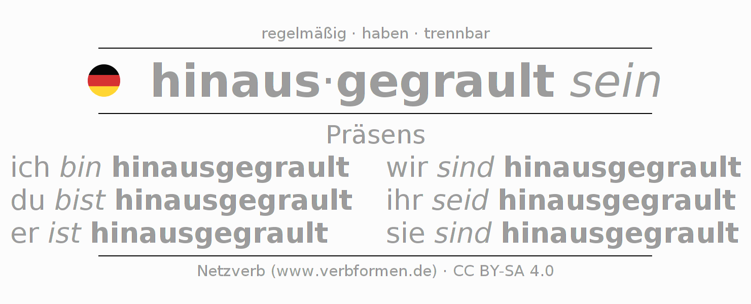 Das Verb hinausgraulen vollständig in allen Personen und Numeri im Präsens Indikativ konjugiert