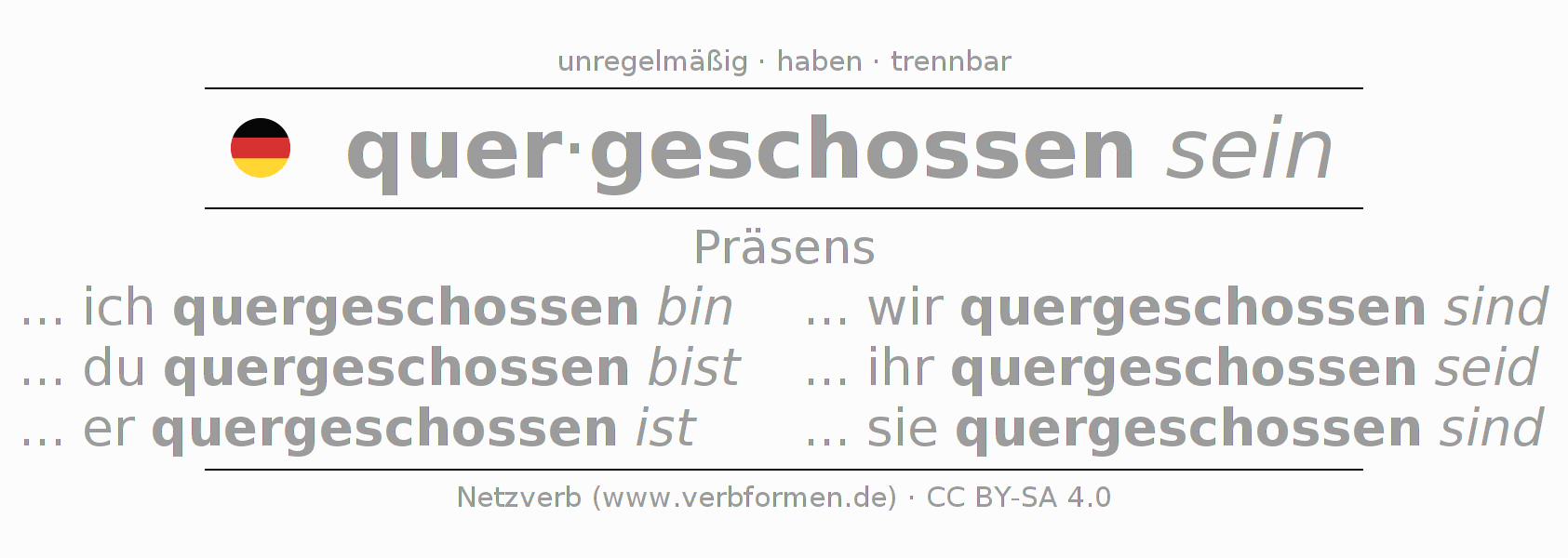 Das Verb querschießen vollständig in allen Personen und Numeri im Präsens Indikativ konjugiert