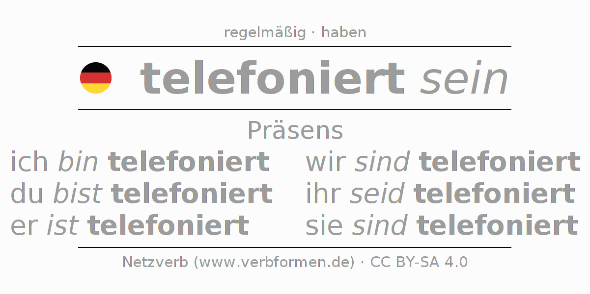 Das Verb telefonieren vollständig in allen Personen und Numeri im Präsens Indikativ konjugiert