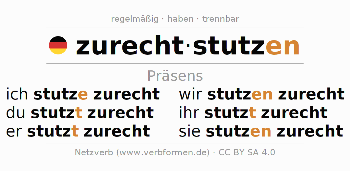 Das Verb zurechtstutzen vollständig in allen Personen und Numeri im Präsens Indikativ konjugiert