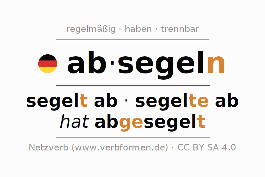 Das Verb absegeln vollständig in allen Personen und Numeri im Präteritum Indikativ konjugiert