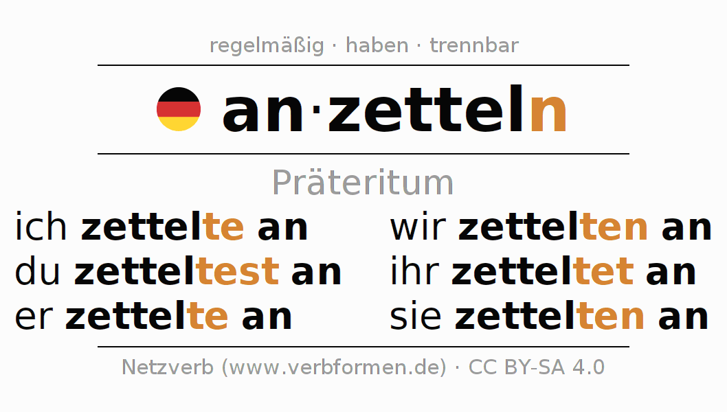 Als regelmäßiges Verb wird die unveränderte Basis zettel