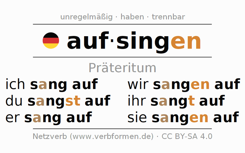 Das Verb aufsingen vollständig in allen Personen und Numeri im Präteritum Indikativ konjugiert