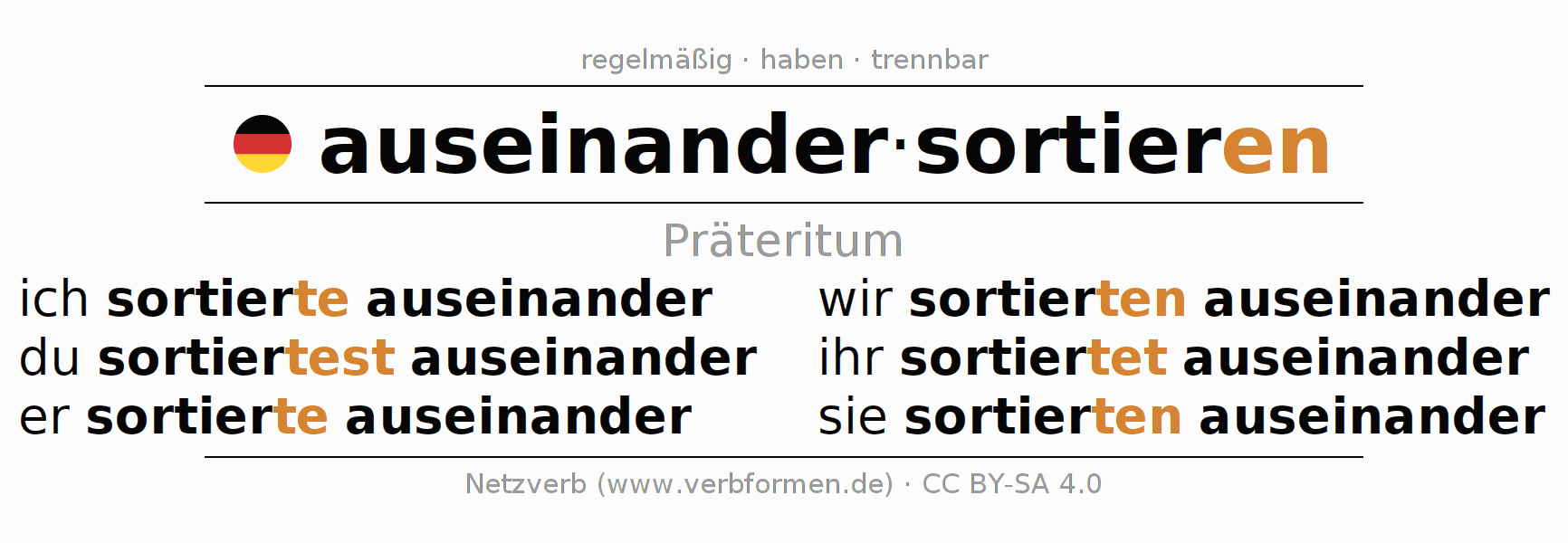 - Wie konjugiert man auseinandersortieren im Präteritum?