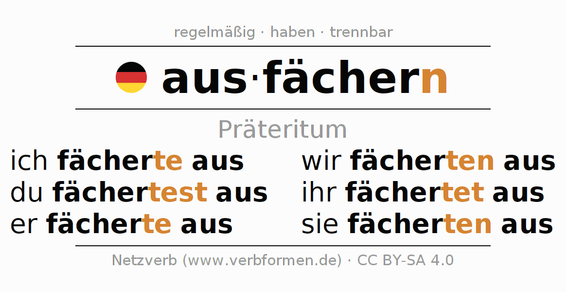 Das Verb ausfächern vollständig in allen Personen und Numeri im Präteritum Indikativ konjugiert