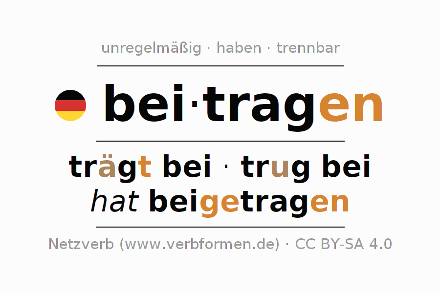 Das Verb beitragen vollständig in allen Personen und Numeri im Präteritum Indikativ konjugiert