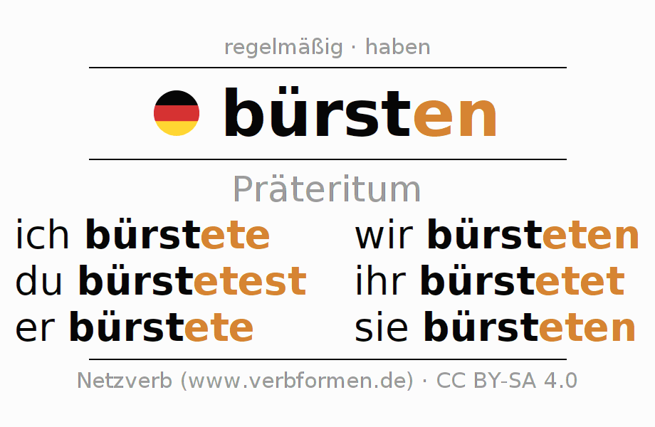 Das Verb bürsten vollständig in allen Personen und Numeri im Präteritum Indikativ konjugiert
