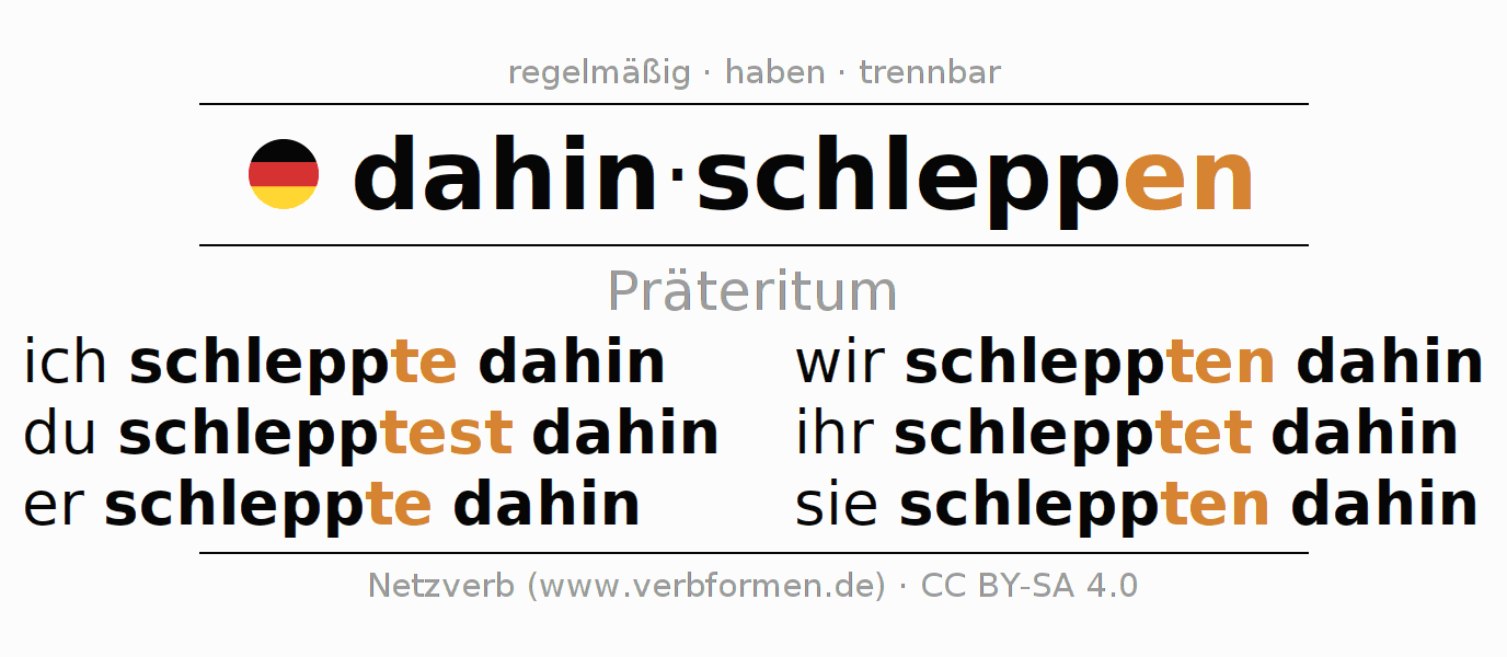 Das Verb dahinschleppen vollständig in allen Personen und Numeri im Präteritum Indikativ konjugiert