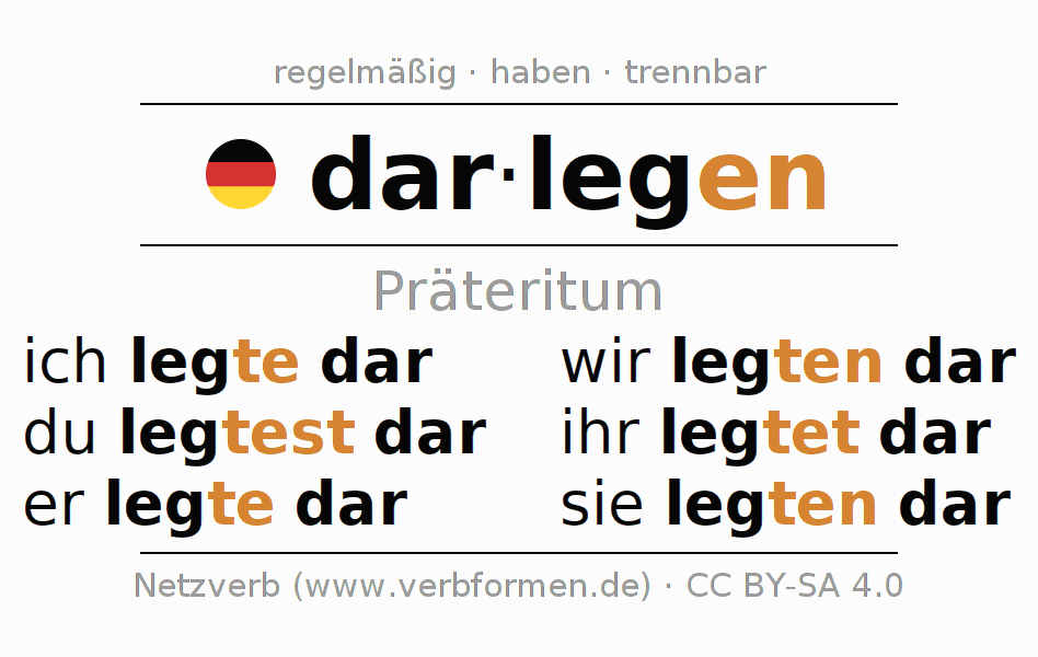 Das Verb darlegen vollständig in allen Personen und Numeri im Präteritum Indikativ konjugiert