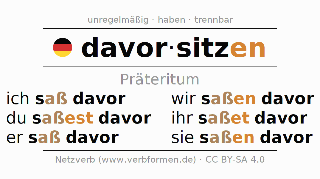 Das Verb davorsitzen vollständig in allen Personen und Numeri im Präteritum Indikativ konjugiert