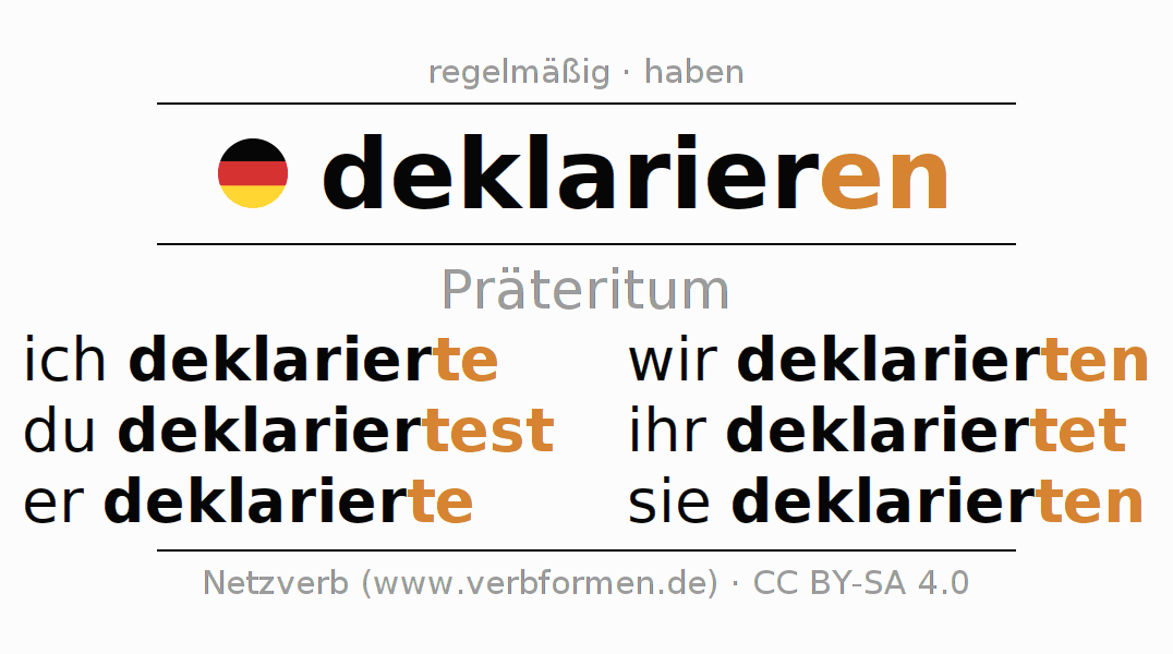 Das Verb deklarieren vollständig in allen Personen und Numeri im Präteritum Indikativ konjugiert