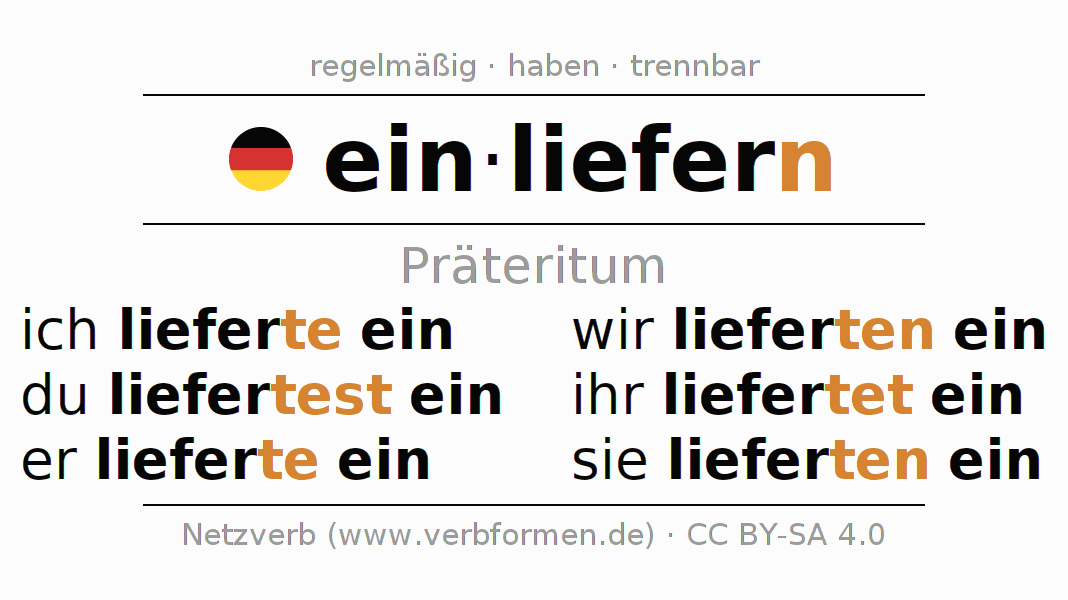 Das Verb einliefern vollständig in allen Personen und Numeri im Präteritum Indikativ konjugiert